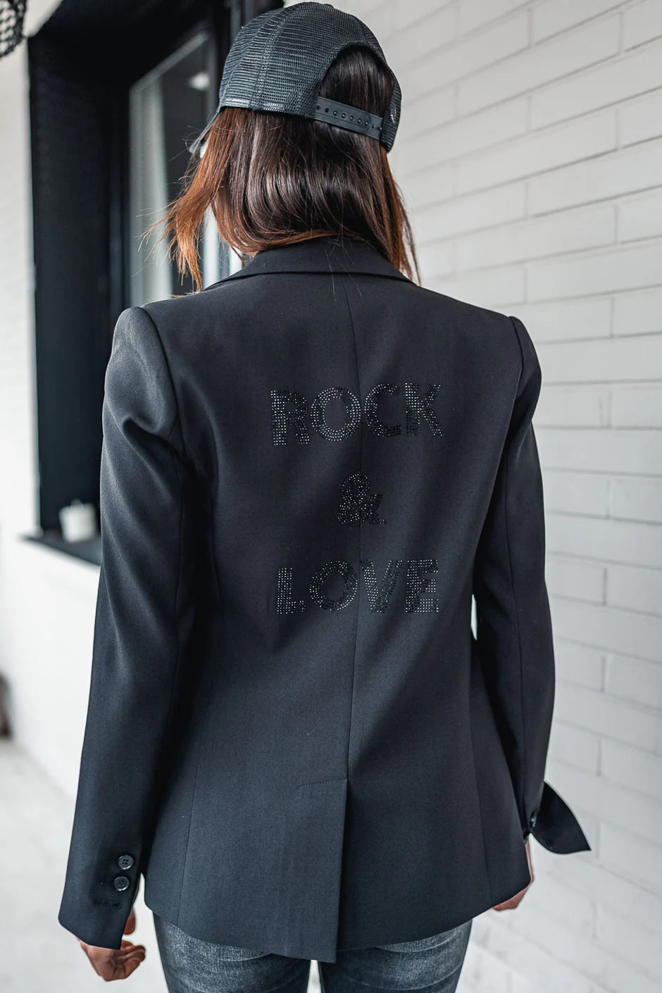 Motif ROCK & LOVE en petits strass noir au dos